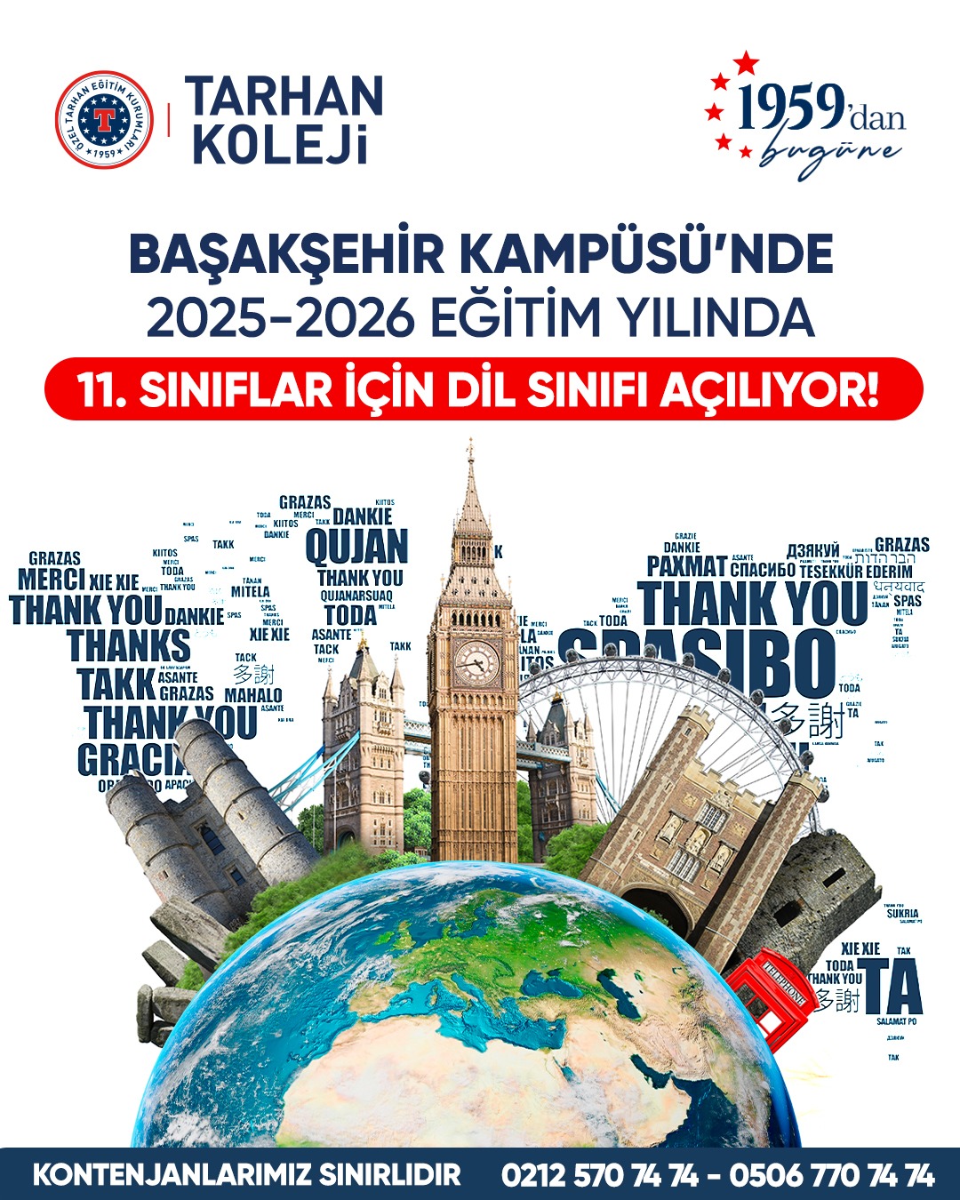 Tarhan Koleji Başakşehir Kampüsü olarak lise kademesinde yeni eğitim-öğretim yılında Yabancı Dil Sınıfı açıyoruz! 🏫📚📌 Uluslararası standartlarda müfredat📌 Kariyeriniz için güçlü bir dil altyapısı📌 Uluslararası Programlar ve SertifikalarHayalindeki Üniversiteye Bir Adım Daha Yaklaş!🚀 Eğer geleceğin kapılarını açan yabancı dil eğitimi almak istiyorsan, hemen başvur!📩 Detaylı bilgi ve kayıt için bize ulaş: 0212 570 74 74 – 0506 770 74 74